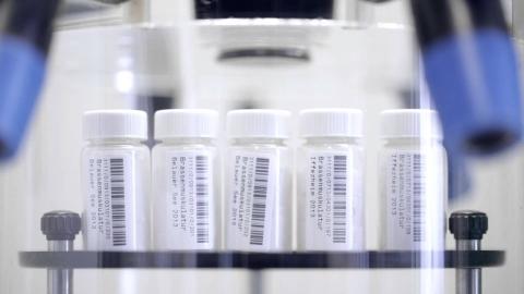 200 Proben à 10 Gramm werden in Glasröhrchen portioniert und mit einem Barcode markiert.