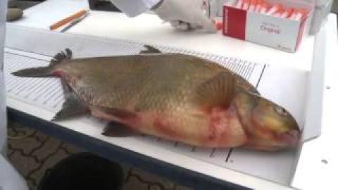 Die Fische werden vermessen und gewogen. Ihr Alter wird anhand der Schuppen und Kiemendeckel bestimmt. Die beprobten Fische sollen zwischen 8 und 12 Jahre alt und 40 bis 60 cm lang sein.